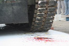 Legnickie lotnisko /Satyrykon 2009r/. - performens Michela Granger`a "Ślady - malowanie czołgiem"